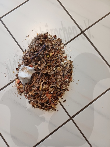 Vielen Dank an Kimberly für die Geldspende, das Eichiefutter, die Walnüsse und den bei ihr auf dem Hof nicht angenommenen Kobel!